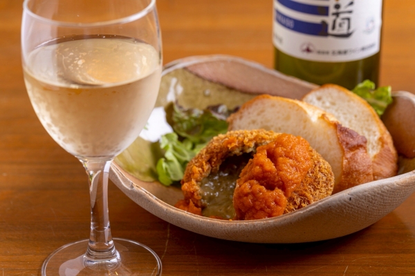 北海道ワインとカニクリームコロッケの夜 2026-02-20 15:25:55 伏見桃山の鍋と北海道居酒屋「hokkaido高田家」です。北海道の白ワイン「ケルナー」とプレミアムカニクリームコロッケ。蟹味噌と蟹身をたっぷり練り込んだ濃厚なクリームに、トマトのほのかな酸味。そこに北海道の白ワイン。やさしい果実味と酸が、蟹の甘みをすっと引き立てます。静かに料理とお酒を楽しむ夜に。本日ディナー、ゆっくりご案内できます。